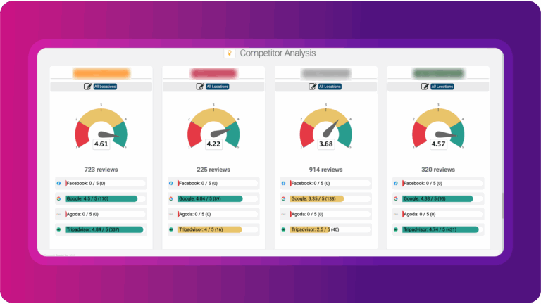 • Compare review volume, sentiment, and engagement metrics against your competitors.
